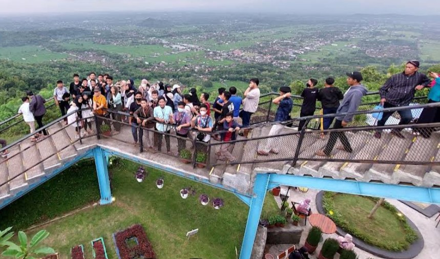 Tempat ini menawarkan pemandangan alam yang memukau, termasuk hamparan hijau perbukitan, laut selatan, dan Gunung Merapi.
