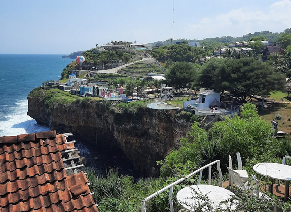Dari ketinggian, tempat ini menawarkan pemandangan yang memukau dari hamparan laut biru dan deburan ombak.